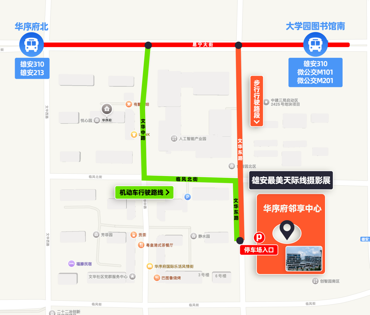 (步行路段:由易寧大街進入文華東路直行通過第一個紅綠燈即可到達)