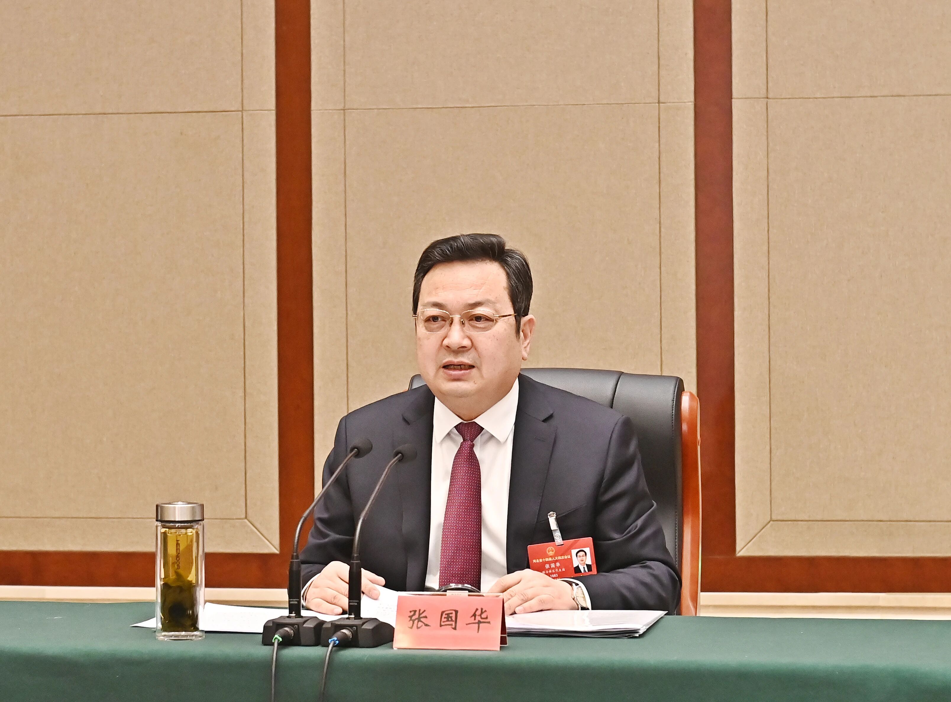 張國華參加省十四屆人大四次會議雄安新區代表團審議。劉向陽攝