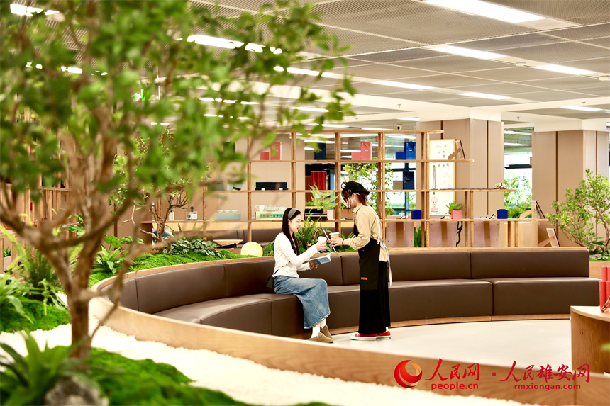 雄安图书馆正式开放,吸引居民前来游览、阅读。人民网记者 宋烨文摄