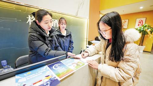 1月30日,东北财经大学研三学生顾子暄正在雄安新区一家青年人才驿站办理入住。 本报见习记者李畅摄