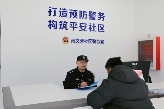 来到南文营社区警务室,也是一番忙碌景象。社区警务室既是维护社区稳定的平安前哨,也是服务社区居民的温馨驿站。家住南文营社区的独居老人王大爷,因腿脚不便无法到派出所办理居住证,社区民警得知后,上门收取证明材料,全程贴心服务,让老人感动不已。“警察同志上门来办,不用我跑腿,真是太周到了。”“您不用客气,居住证办下来后,我再上门给您送!”