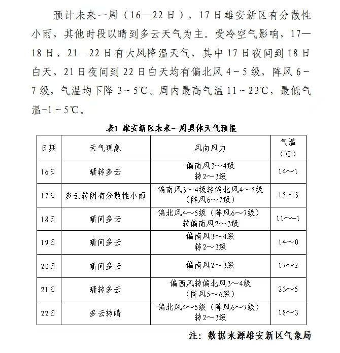 未来一周天气预报