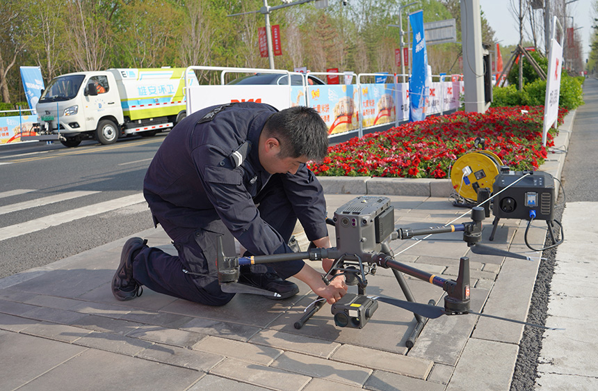 空中,多架警用无人机全域巡航、实时回传高清画面,实现赛道全覆盖巡查与动态预警,通过空中语音广播及时疏导人流、快速处置突发情况;地面,依托智能交通管控平台,对赛道周边车流、人流进行全程实时监测,根据赛事进程分时分段精准解除交通管制,科学设置非机动车与行人临时穿越点,最大限度降低临时管控对群众日常出行的影响。