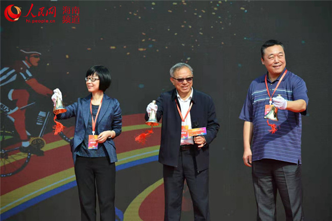 海口市政協副主席、秀英區委書記張霽,人民網總裁辦公會成員、辦公室主任劉紅,海南省旅游和文化廣電體育廳藝術處處長葛雲峰為第五屆海口火山自行車文化節盛情“搖鈴”啟動。