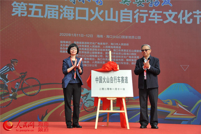 海口市政協副主席、秀英區委書記張霽、人民網總裁辦公會成員、辦公室主任劉紅共同為 “中國火山自行車賽道”揭牌。