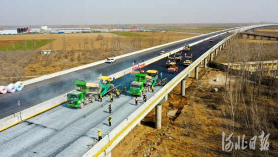 作為這三條在建雄安新區高速路網中,唯一直接進入新區的一條,京雄高速已經進入“決戰決勝”階段。京雄高速SG6標項目副經理孟春飛表示,為響應項目“決戰3月,決勝4月,確保5月份通車”號召,該標段加大人員、設備投入,搶抓工期,挂圖作戰。人員超配30%,備用的幾台攤鋪機、運輸車輛等也調至現場,隨時准備投入作業。