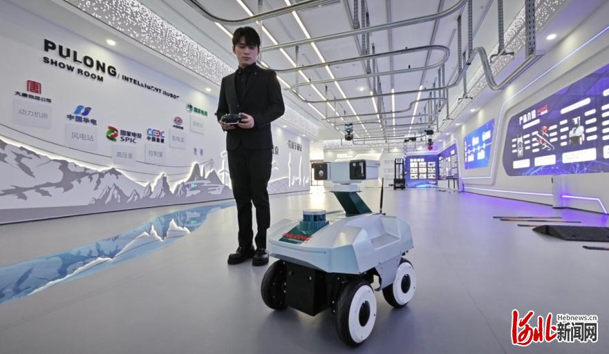 近日,雄安新區科創中心中試基地內,北京普龍科技有限公司銷售部總經理童浩軒演示操作智能巡檢機器人。曹錚攝