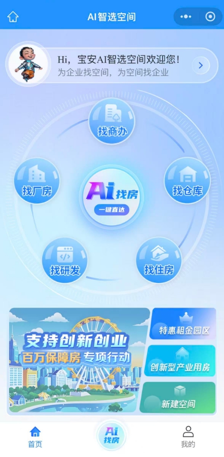 上線的“寶安AI智選空間”平台,集納了寶安區2600多個園區、超1億平方米產業空間數據,具有AI語音輸入直達需求、地圖篩選精准定位、線上視頻實景看房、全流程一鍵辦理等四大核心功能。