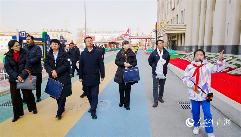 嘉賓走訪尖扎縣民族團結紅軍小學。人民網記者 況玉攝