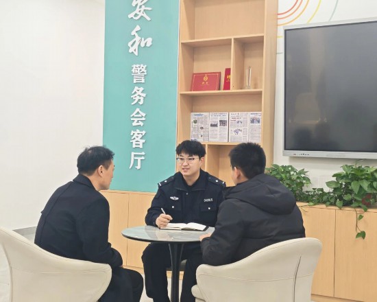 2月19日,李先生因樓上聚餐聚得太晚,噪音太大來到槐香河派出所求助。民警王澳耐心安撫李先生,隨后將劉先生邀請到了“安和”警務會客廳,開啟了一場“圓桌調解”。不同於傳統的櫃台式接待,這裡撤掉了物理隔斷,擺上了圓桌和沙發,溫馨的環境,讓矛盾雙方的情緒先平復了幾分。