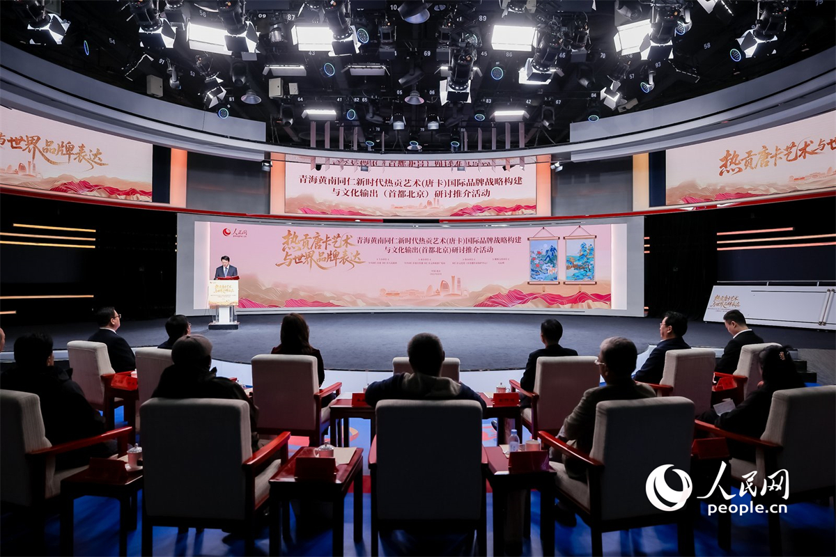 人民网北京10月24日电 (杨启红、况玉)10月24日,由中共同仁市委、同仁市人民政府主办的青海黄南同仁新时代热贡艺术(唐卡)国际品牌战略构建与文化输出(首都北京)研讨推介活动在人民日报社新媒体大厦人民网一号演播厅如期举行,同步启动“热贡艺术(唐卡)国际品牌”全球推广计划,“从文化力到品牌力——民族特色文化品牌构建的热贡实践”金台圆桌研讨会当日举行。 推介会现场。人民网 况玉摄 此次活动旨在系统研讨热贡艺术(唐卡)国际品牌的发展战略,全面提升热贡艺术(唐卡)的品牌价值,将热贡艺术所承载的文化内涵、精湛技艺等推向世界舞台,进而实现有效的文化输出和产业振兴。