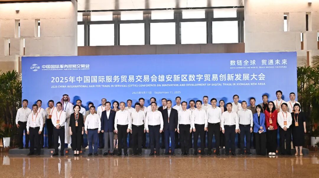 9月11日,河北省委常委,雄安新区党工委书记、管委会主任张国华与参加2025年中国国际服务贸易交易会雄安新区数字贸易创新发展大会的行业协会、企业重要嘉宾举行工作座谈。 张国华与参加2025年中国国际服务贸易交易会雄安新区数字贸易创新发展大会的部分重要嘉宾合影。刘向阳摄 张国华代表雄安新区党工委、管委会对各位嘉宾的到来表示热烈欢迎,向大家长期以来对雄安新区的关心支持表示衷心感谢。