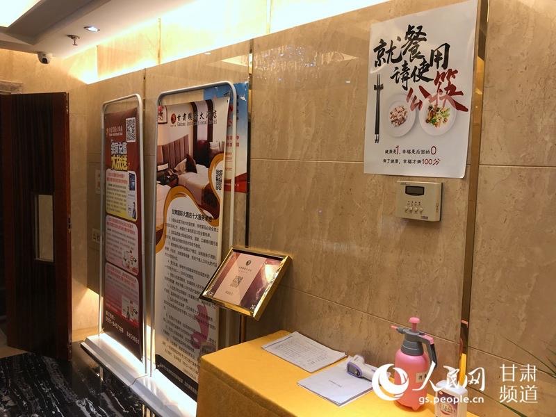 甘肃国际大酒店走廊内的醒目位置张贴着海报,提醒人们使用公筷。王文嘉 摄