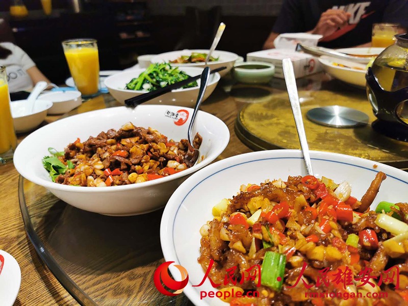 雄安新区容城县聚湘食饭店内,每道菜都配备了公筷公勺。李兆民摄