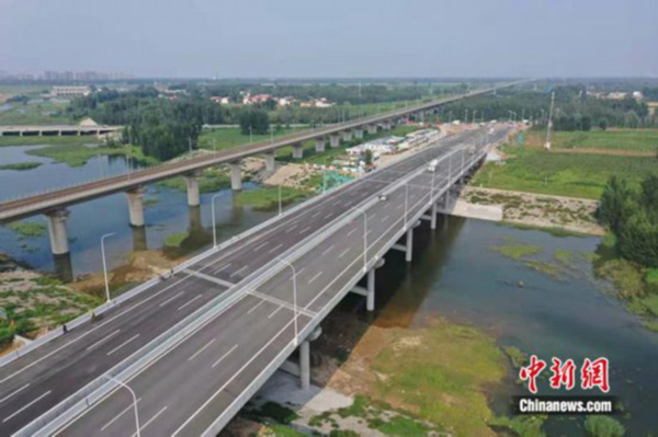 8、京雄高速小清河特大桥中跨日前合龙完成。至此,京雄高速出京首段工程连通。
