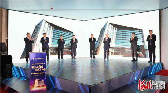 图为启用仪式上,与会领导和嘉宾共同按下启动屏幕,正式为新大楼启用揭幕。