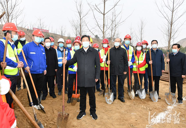 2021年3月12日是第43个植树节。上午,省委书记、省人大常委会主任王东峰,省委副书记、省长许勤,省政协主席叶冬松,省领导袁桐利、高志立、张国华、范照兵在雄安新区雄安郊野公园开展义务植树活动,带头推进国土绿化行动。河北日报记者赵威摄