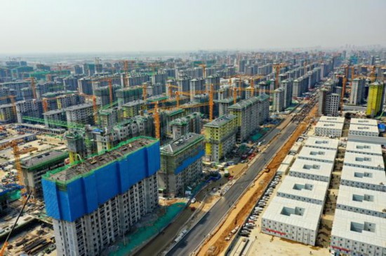 4月8日拍摄的雄安新区容东片区安置房项目建设现场。图片来自新华社