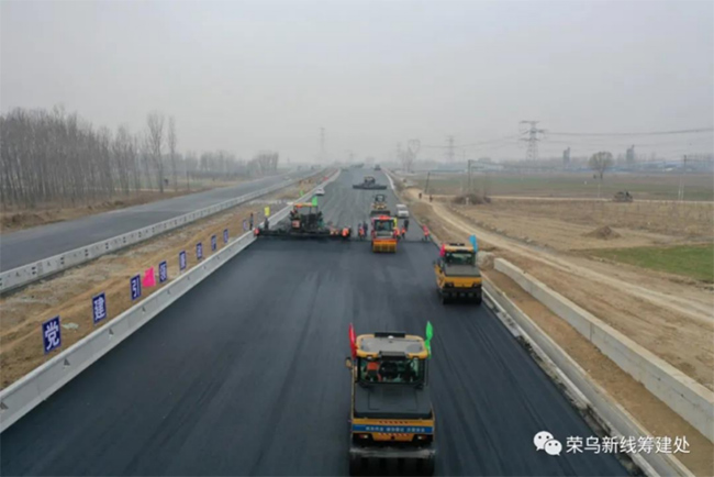 人民网雄安5月6日电 (何美萱)随着最后一车沥青混合料摊铺结束,荣乌高速新线ZT10标5日率先完成全部沥青路面摊铺,为5月底建成通车奠定坚实基础。