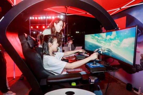 同时在舞台两侧还设有红色云游互动体验区、人民红数字气味播放器以及“壮志凌云”创新型军训VR体验设备等,让学子们在亲身参与中更深入了解波澜壮阔的中国共产党党史。