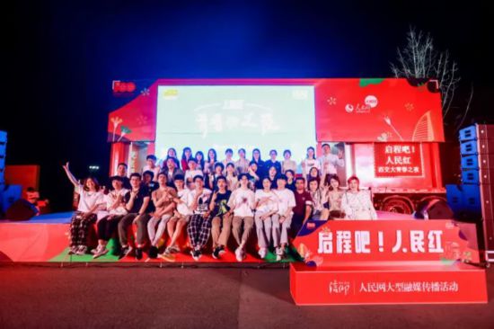 5月21日晚,“人民红”青春之夜在“人民红”快闪车开演。舞台上,西安交大的学子纵情歌唱,翩翩起舞,台下霓虹灯与手机灯光交相辉映,欢笑与呐喊声此起彼伏。