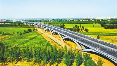 ②无人机航拍的京雄高速公路河北段白沟河特大桥。桥梁(包含引桥)全长约1.76公里,建成后将成为目前我国规模最大的上承式钢箱连拱桥。河北日报记者 耿辉摄