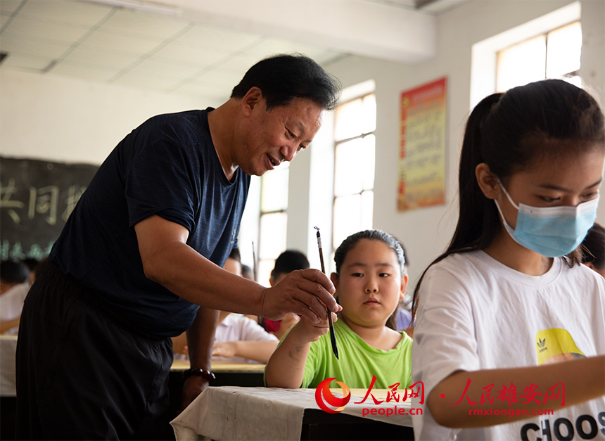 人民网雄安7月21日电 (李雪晴 宋烨文)记者19日上午来到雄安新区容城县午方西庄村村委会,看到几十名学生正手握毛笔,在老师的指导下,认真学习书法。据了解,这是村里办的暑期公益书画培训班,不收取任何费用。