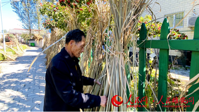 走在东淀头村,很多房屋前都摆放着成捆的蒲草。