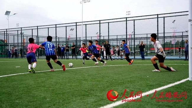 在大健康体育公园进行足球比赛的孩子们。安新县宣传部供图