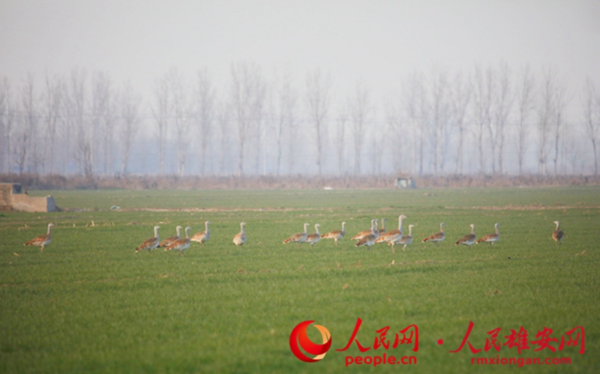在雄安新区安新县田地里栖息的大鸨。齐明摄
