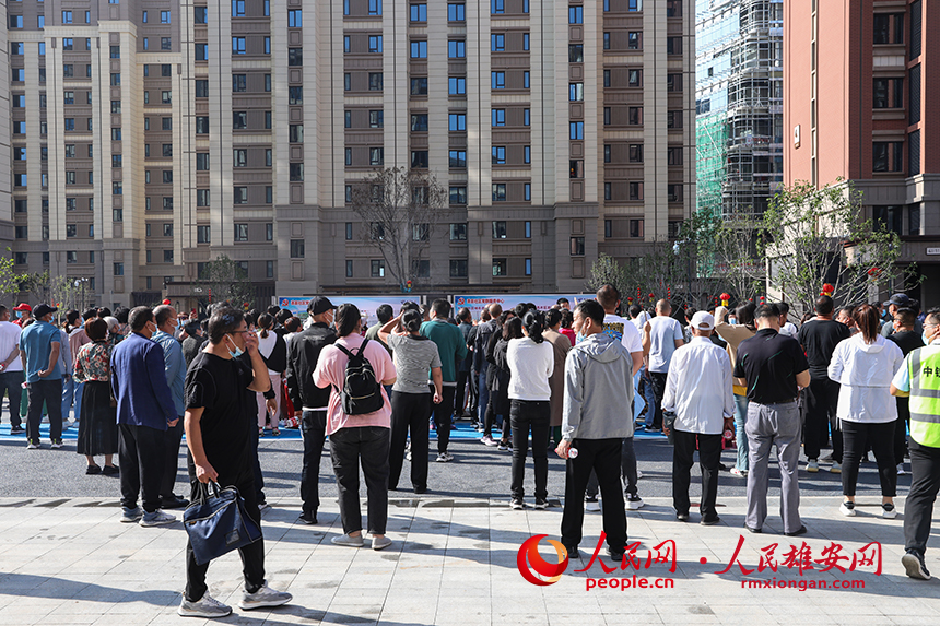 安新县部分回迁群众来到容西片区锦泉南苑小区参观。人民网 李兆民摄