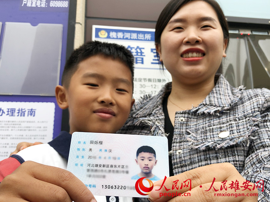 7岁的小学生田烁楷也在这天拿到了他的第一张身份证。田烁楷一家原籍在安新县,两年前作为回迁群众住进了容东片区。田烁楷的身份证上,住址一栏已更换为了“河北雄安新区容东片区”。“拿了带‘雄安新区’四个字的新身份证,我很开心。”田烁楷说。