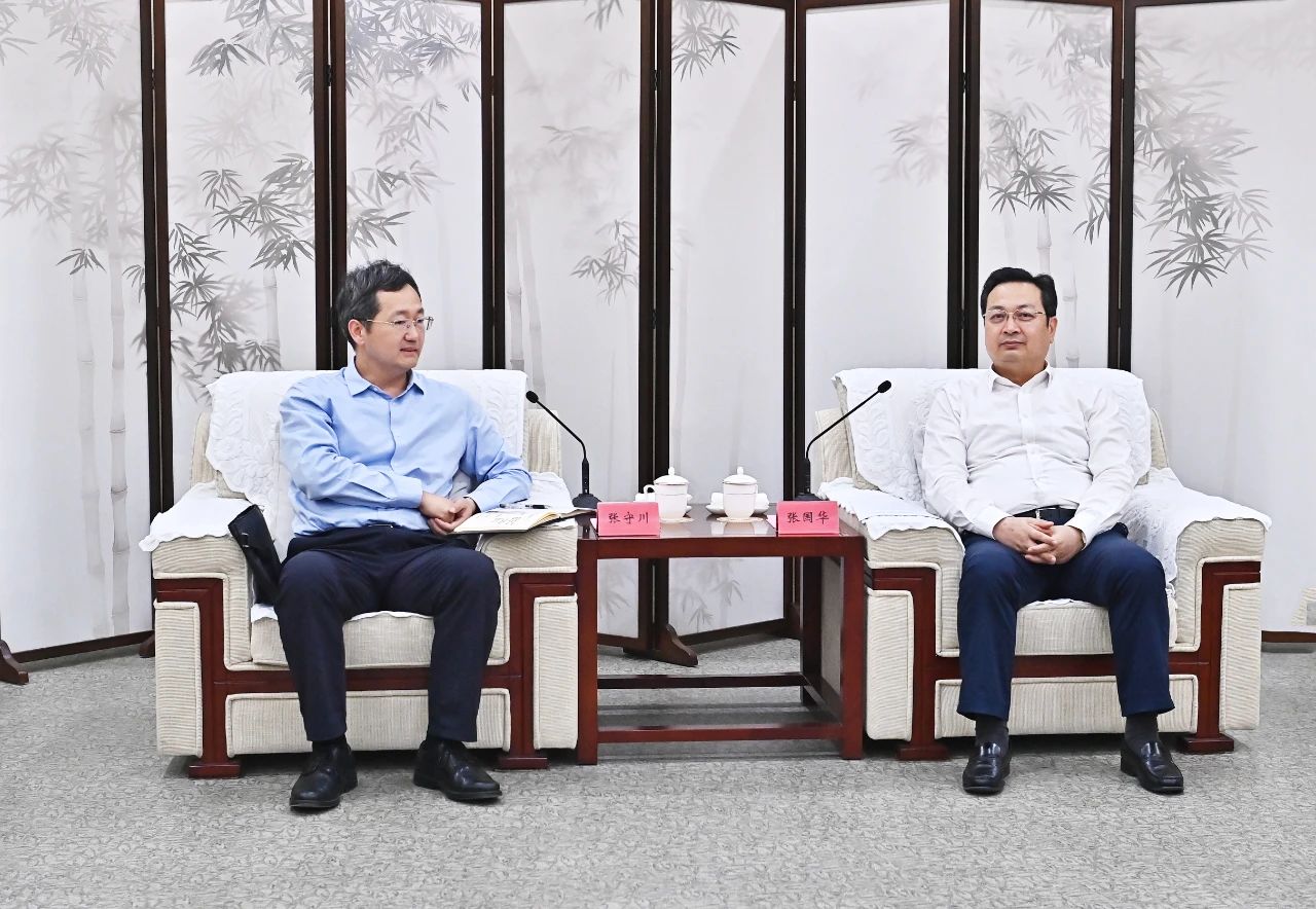 张国华与中国工商银行副行长张守川一行举行工作座谈。刘向阳摄