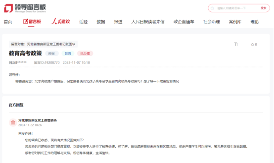 雄安早知道丨河北网友咨询雄安疏解高校未来招生政策,官方回复了(2024.08.11)