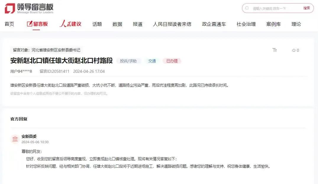 您也有关于雄安的问题或建议?欢迎在后台留言告诉我们。您也可以通过微信小程序、APP或者PC端在人民网“领导留言板”留言。