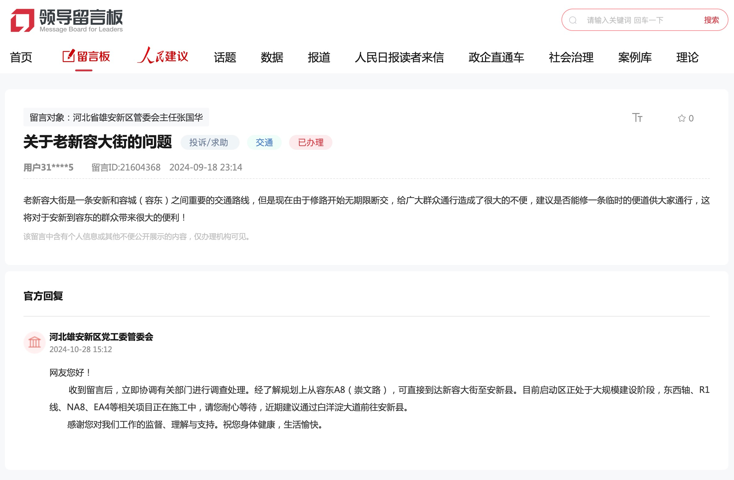 (以上建言来自人民网“领导留言板”)