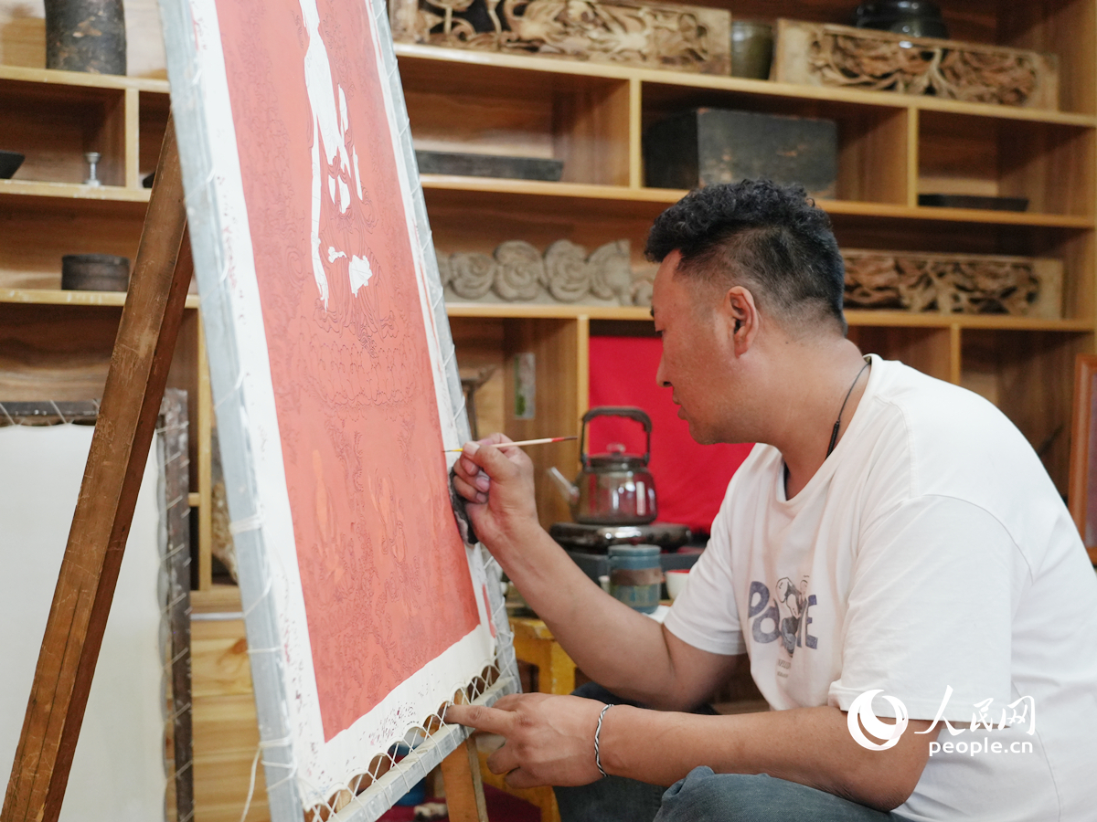 青年唐卡画师正在绘唐卡。人民网记者 杨启红摄